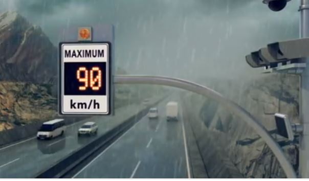 The VSLS is currently posting speed limits based on three different inputs. Firstly, changes in the operating speed of the highway due to any type of event (construction, weather, or congestion) can reduce the posted speed limit. Secondly, the road surface condition is measured and events which are considered heavy rainfall or worse (snow and ice) may reduce the speed limit to 80 km/h. Thirdly, a reduction in visibility due to fog may also reduce the speed limit.