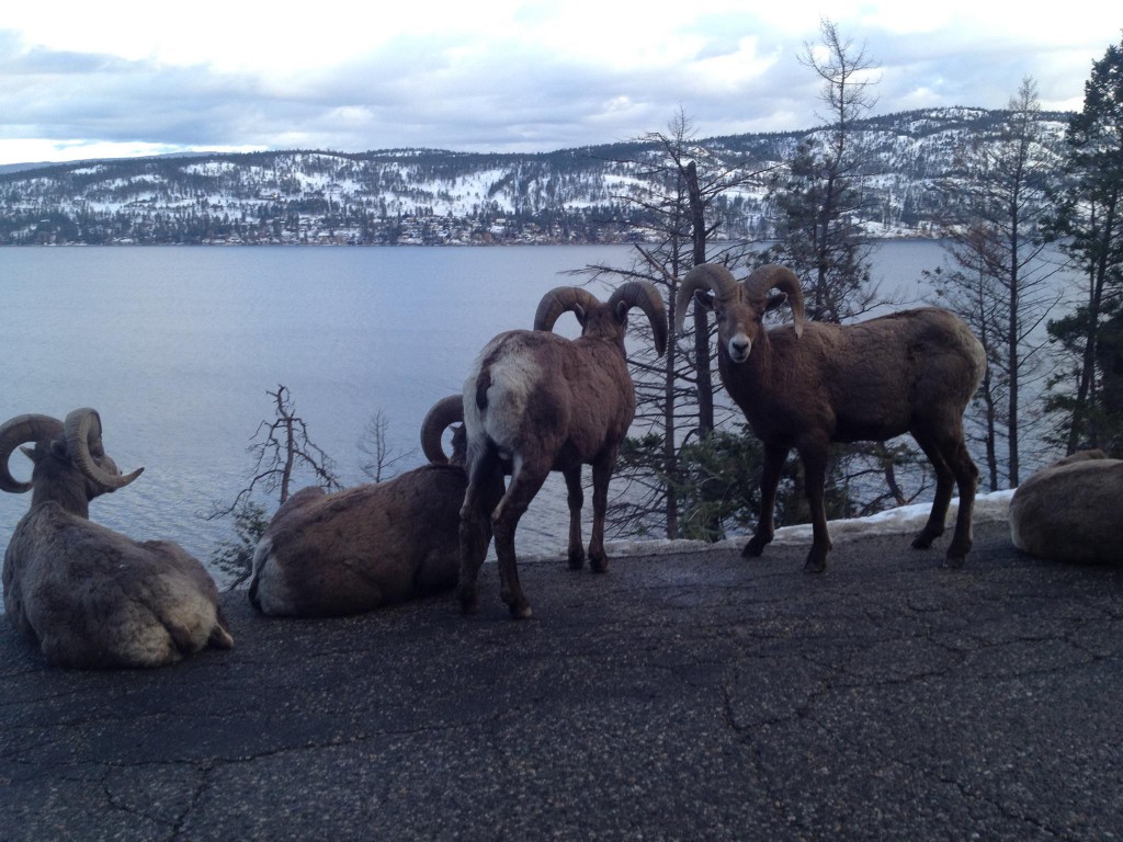 While driving along Westside Road near Kelowna, one of our ministry staff got a bit of a wildlife surprise. Nine bighorn sheep were gathered at the edge of the road, overlooking the lake! Have a
